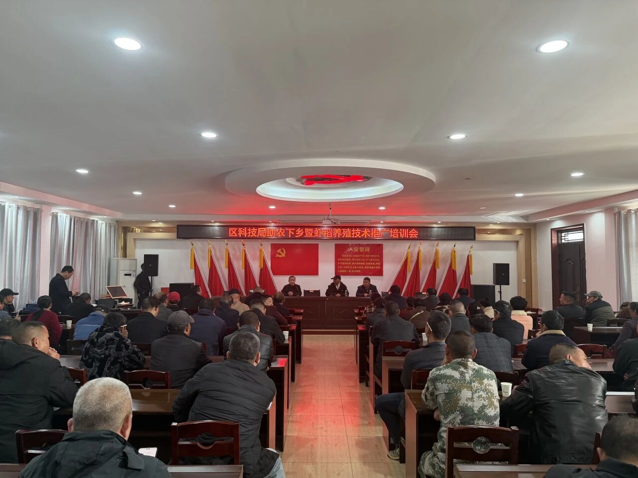 上午九点,双垱村村委会的会议室里已座无虚席,一百余名来自周边的农业个体户、合作社成员早早到场,他们中既有资深养殖户,也有刚入行的新农人,共同期待着这场“科技及时雨”。