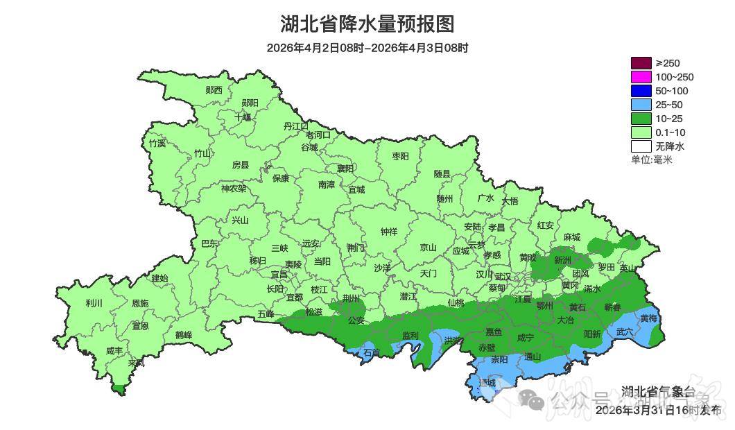 不过,这份舒适可是“限时体验”。气象部门介绍,新一轮降雨已经“蓄势待发”,从4月1日夜间至3日,雨水自西向东“返场”。1日晚,鄂西南率先转为小到中雨。2日雨水逐渐覆盖全省,南部和东部会有小到中雨,局地大雨。3日大部地区转为多云到晴,仅东部地区还有小雨残留。
