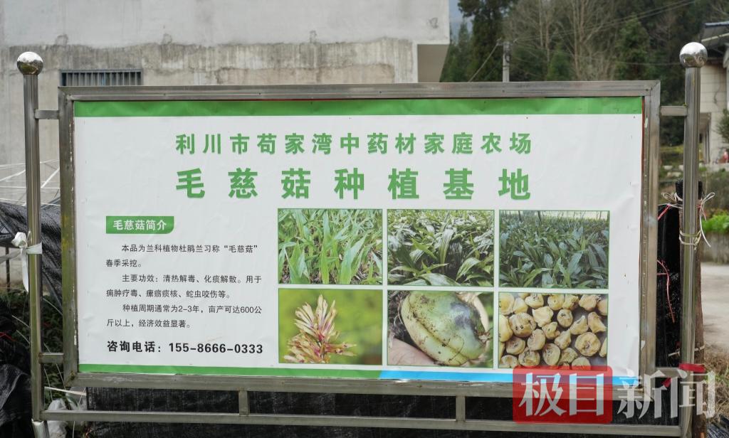 仲春时节,利川市元堡乡元堡村苟家湾中药材家庭农场里,连片的毛慈菇已吐露新芽,农场负责人邹国江正在查看毛慈菇苗情。这家家庭农场主打毛慈菇种植,实现产业增收的同时,带动村民就业、共享种植技术,让毛慈菇成为当地致富产业。