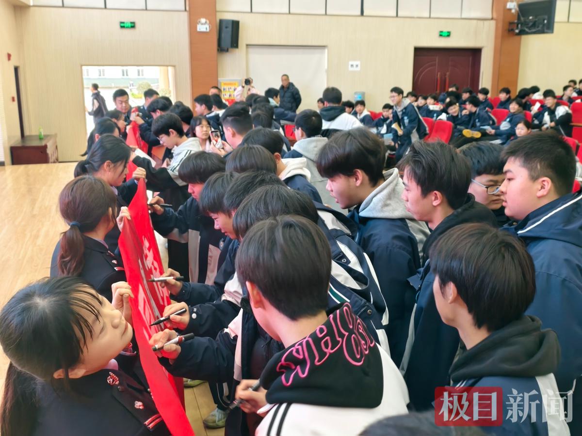 同学们在横幅上签名承诺