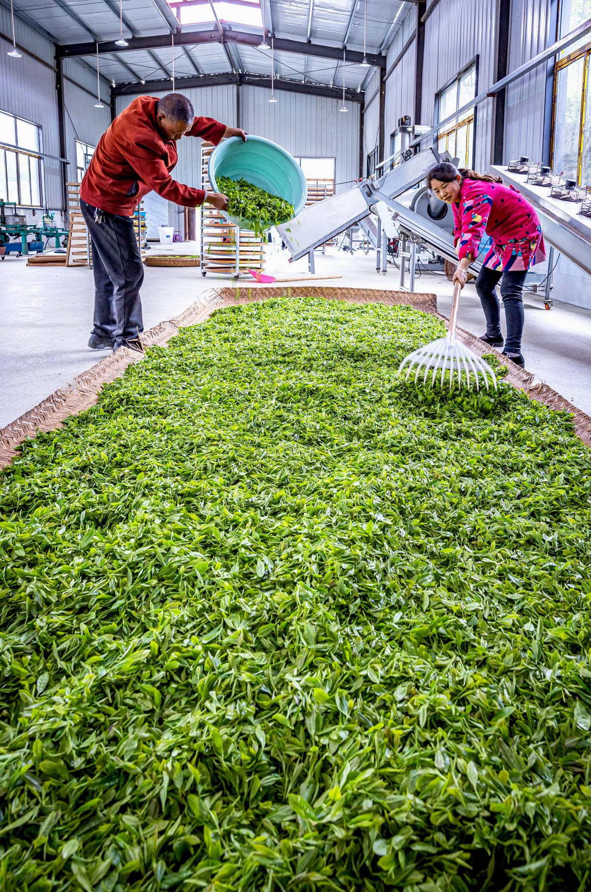 炒茶工正在处理刚采摘下的茶叶鲜叶。(通讯员供图)