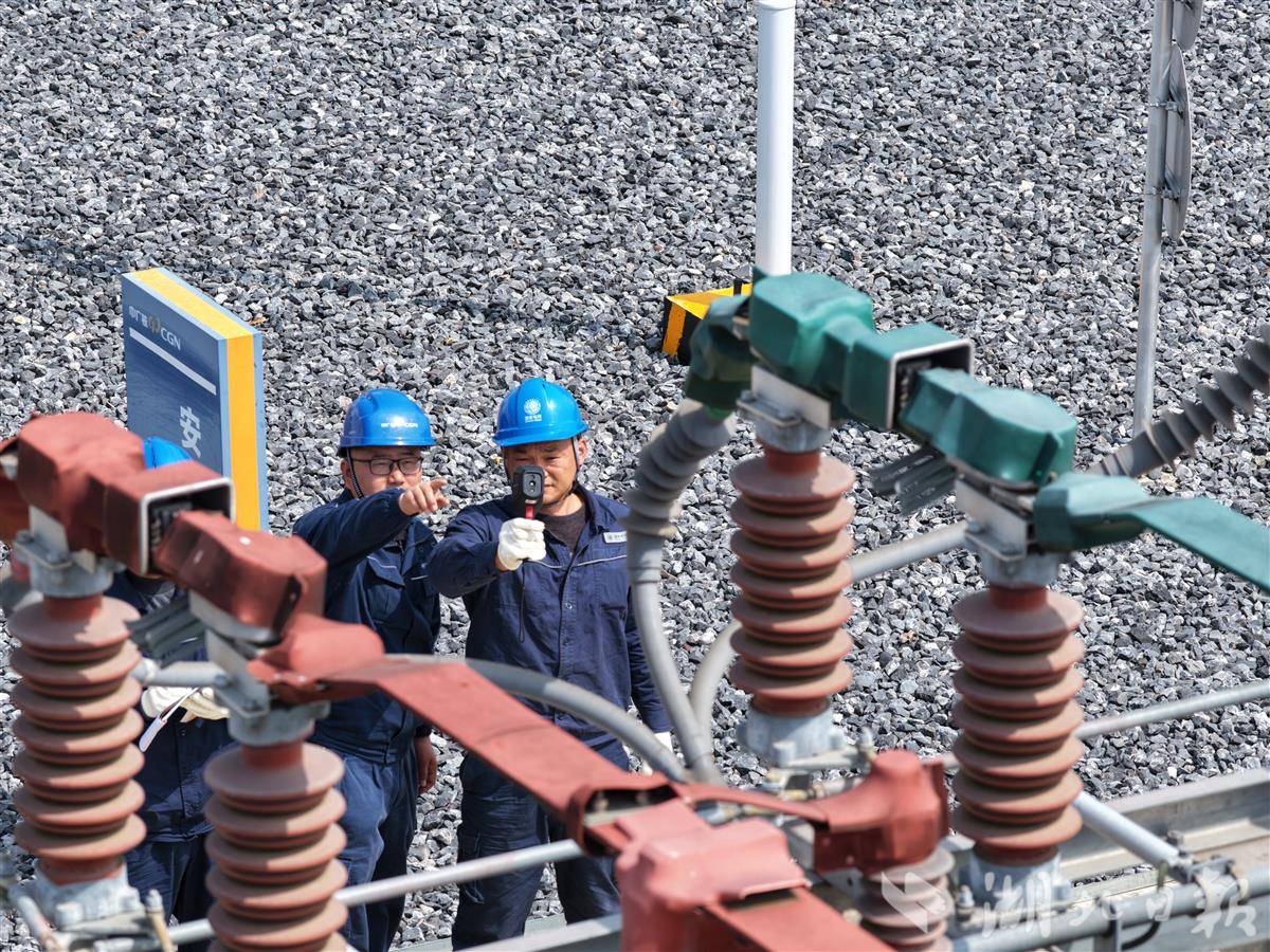 大悟县供电公司人员对中广核大坡顶风电场110千伏升压站进行红外测温,确保风电输送电力设备运行正常。