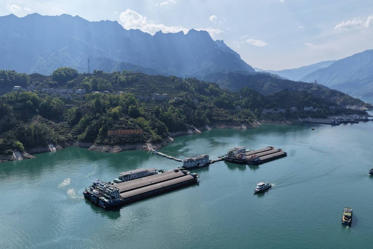 鸟瞰长江三峡通航综合服务区。(湖北日报通讯员汪睿翔)
