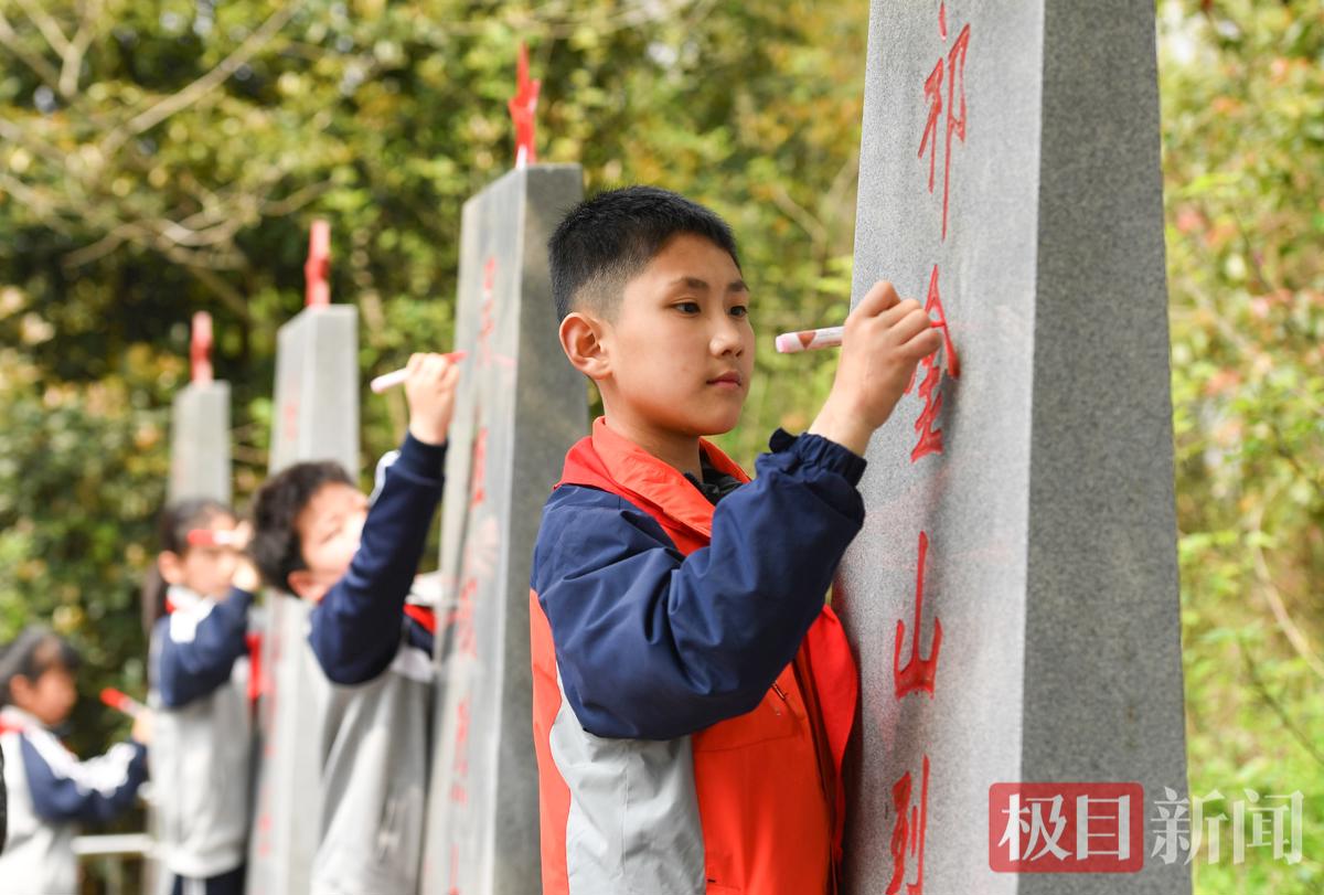 为烈士墓碑描红。