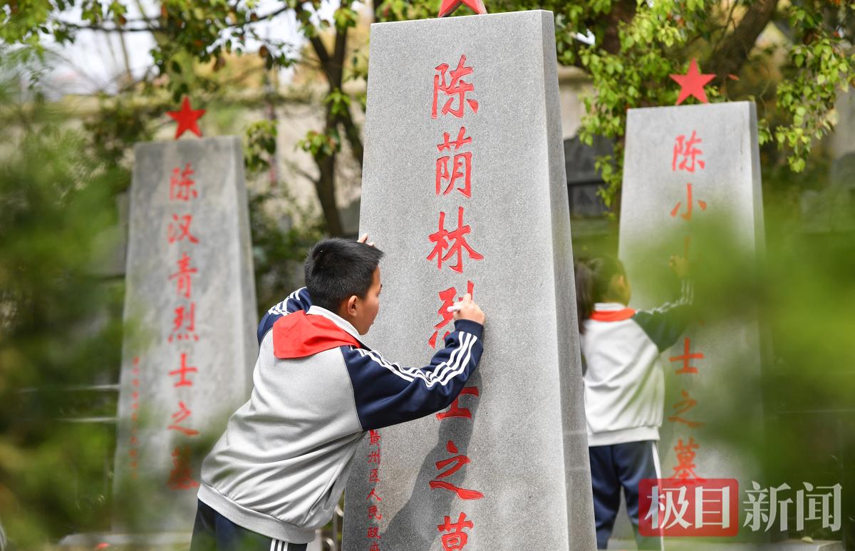 又是一年清明。4月1日,黄冈市实验小学、第三小学师生代表来到黄州区陈策楼镇,参观陈潭秋故居纪念馆,并在烈士集中安葬点为烈士墓碑除尘描红。