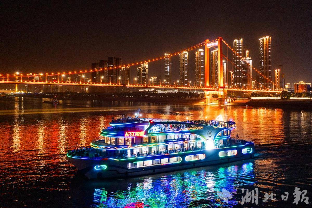 本次清明小长假期间(4月4日至5日),长江荣耀号每日开设3班夜航,开航时间分别为18:30、20:00、21:30,单班航行时长60分钟。航班全程融合国风歌舞、现场演唱、花式调酒与仪式感过桥体验,在航行中串联黄鹤楼、龟山电视台、长江大桥、晴川阁等20余个城市地标,让游客在江风与灯火中尽览江城风华。