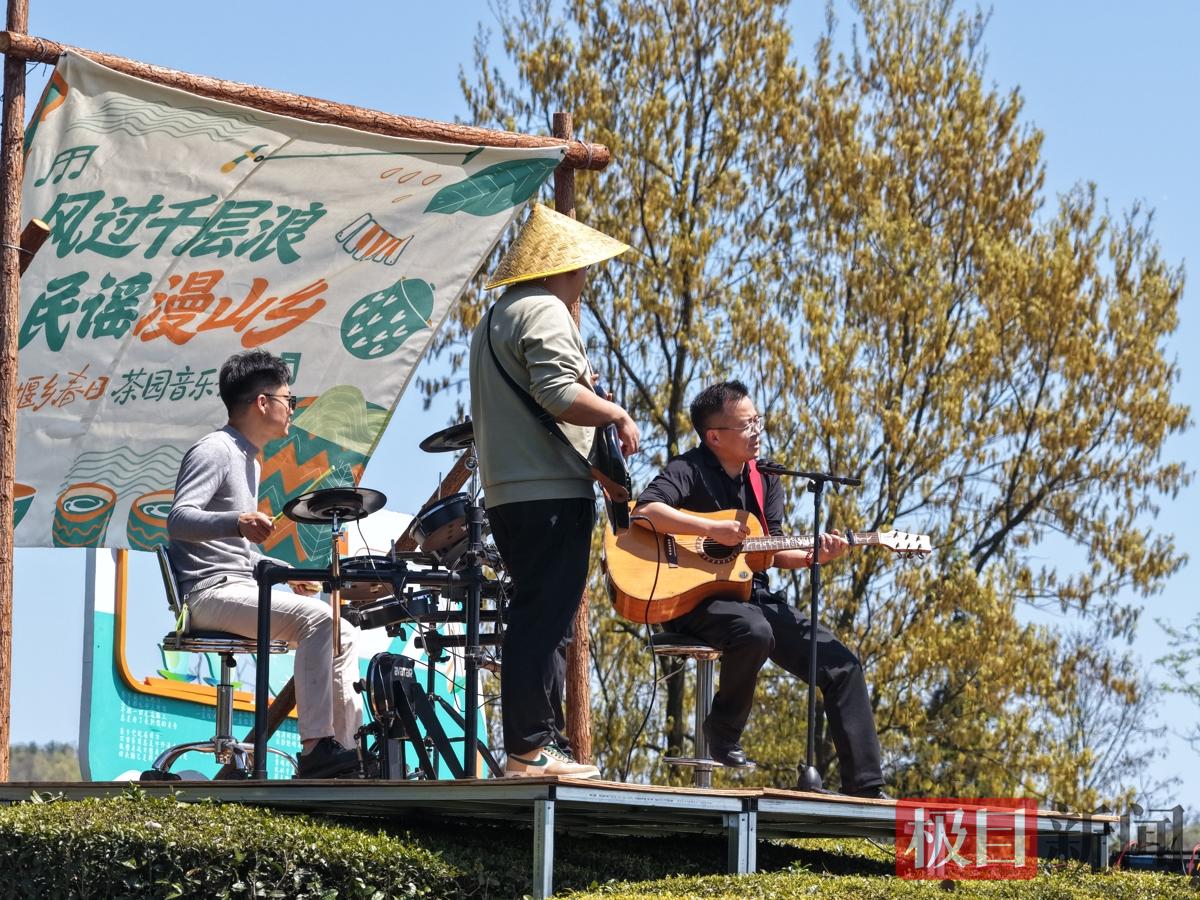 4月1日,湖北长阳土家族自治县大堰乡千丈坑村的茶园里,空灵的吉他声打破了山间的静谧,悠扬的民谣旋律随风漫过层层茶垄,一场别开生面的茶园音乐会在这里上演。