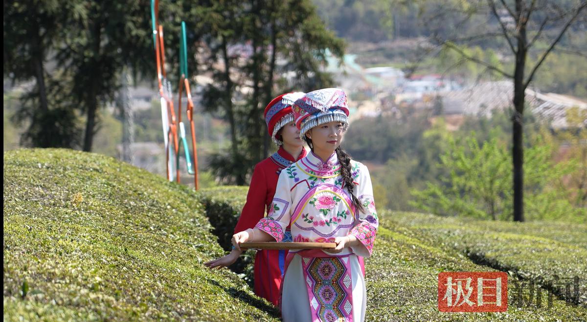 活动现场,本土民谣歌手轮番登台,舒缓的歌声与山间的清风、茶树的清香交织相融。游客们热情高涨,挎起竹篓,跟着当地茶农学习采茶技巧,指尖轻捻嫩芽,体验劳作乐趣;身着土家服饰的幺妹们端上刚冲泡好的新茶,茶汤清澈、香气馥郁,让游客在赏景、听歌之余,品味春日茶韵。
