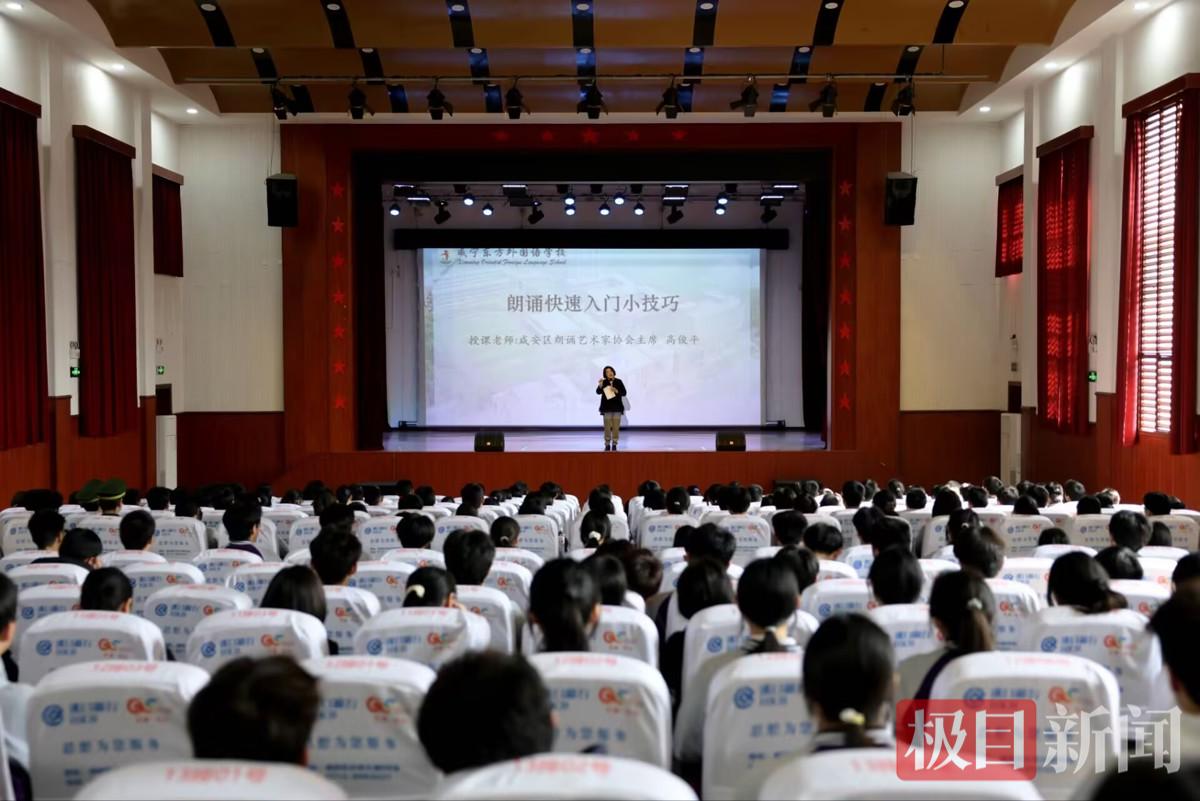 活动当天,咸安区文联还联合咸宁东方外国语学校师生,在汀泗社区红色影院开展了沉浸式文艺辅导活动。区朗诵艺术家协会主席高俊平带来《朗诵快速入门小技巧》专题分享,围绕“一停二重三快慢”的核心技巧,手把手教会近260名学生掌握朗诵精髓;区作家协会主席韩志以《如何写好一篇文章》为主题,从文章构思、开头结尾创作、修辞手法运用等方面细致讲解,帮助同学们提升写作能力,让文字更具感染力。此外,区文艺志愿者毛义燕、田隆健两位老师,现场带来原创诗歌《铁军百年颂》《汀泗桥》赏析教学,将红色文化传播与语言文字素养提升有机结合,让这场行走的大思政课,既有精神高度,又有文化温度,更有传承力度。
