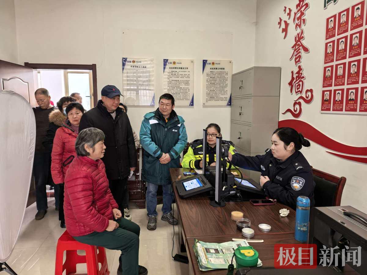 3月18日,在谷城县石花镇杨溪湾集中办证点,流动服务主力队快速搭建临时便民服务驿站,现场铺开采集设备,一站式完成人像拍摄、指纹录入、信息核验、业务受理全流程。民警耐心引导村民有序排队,细致讲解证件补办、到期换领、邮寄送达等惠民政策,同步解答户籍迁移、社保关联等常见疑问。在高龄老人邓某家中,小分队民警化身贴心“专属办证员”,俯身帮老人整理衣领、调整坐姿,反复优化拍摄光线与角度,用细致举动化解群众紧张,用暖心服务攻克办证难题。