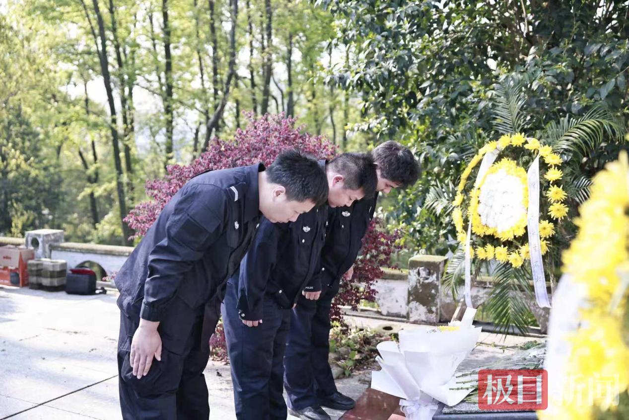 随后,全体民辅警列装整齐、秩序井然,三人一组依次领取鲜花,缓步走向何军烈士墓,向烈士行三鞠躬礼,将手中的鲜花轻轻放置在墓前,诉说对英烈的思念与敬仰。随后逐一瞻仰陵园内其他革命烈士墓,敬献鲜花,追忆英烈们为国家安宁、人民幸福作出的不朽贡献。