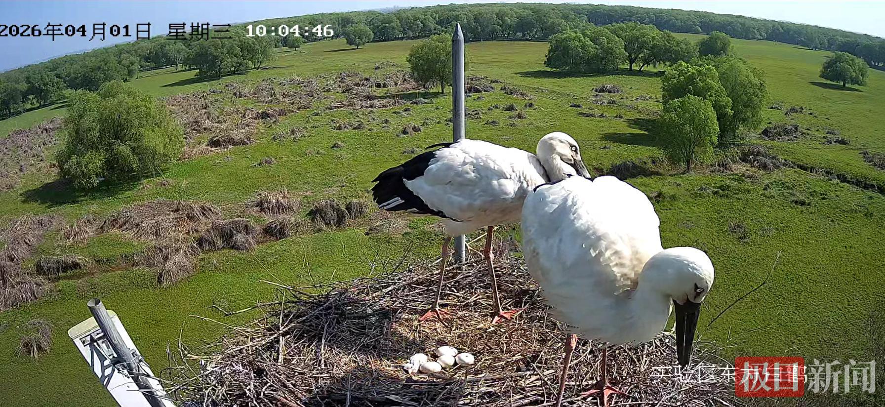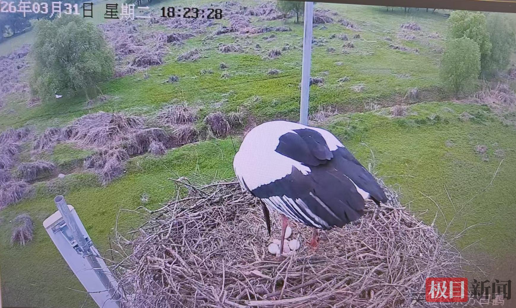 新闻记者了解到,此次监控拍摄到东方白鹳产卵并非首次。去年,有一对东方白鹳在保护区繁衍,但产卵3枚后未能孵化成功。