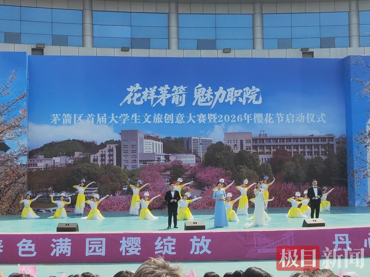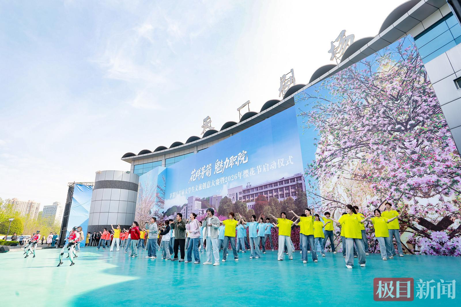 连日来,湖北工业职业技术学院的樱花开得正艳,该校樱花久负盛名,吸引了众多师生和市民前往观赏。4月2日,“花样茅箭 魅力职院”茅箭区首届大学生文旅创意大赛暨2026年樱花节在樱花掩映下的天一剧场火热开场。本次活动以樱花为媒、创意为桥,旨在搭建校地融合、文旅赋能的交流平台,吸引了多所院校师生、劳模代表及企业家共同参与。