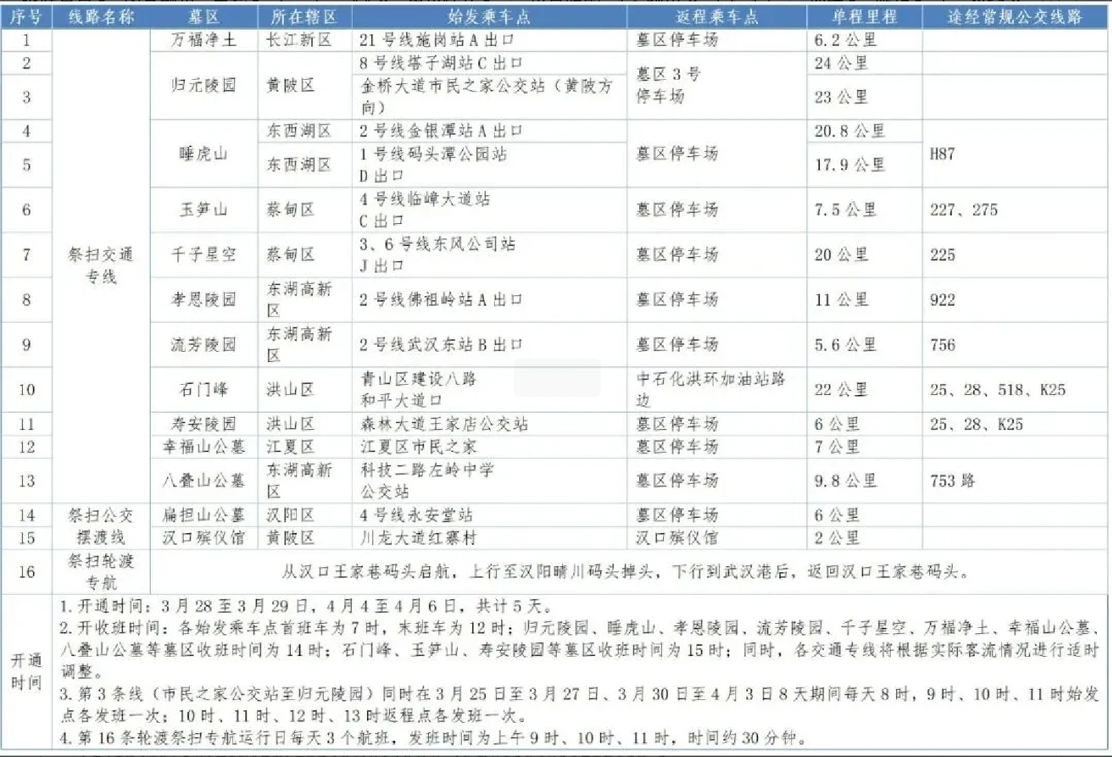 ●交通管理措施:扁担山公墓在4月4日、5日、6日每日7:00至15:00实行临时交通管理措施,汉阳大道(蟠龙路至龙阳湖北路)、仙女山路地面层(锅顶山天桥至龙阳湖北路)、燎原路(玫瑰街至汉阳大道)禁止机动车通行(公交车、出租车、持证车除外)。