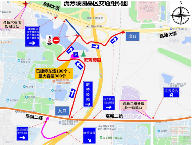 ●交通管理措施:4月4日、5日、6日每日7:00至15:00, 森林大道(光谷四路至青王路)禁止机动车通行(公交车除外)。