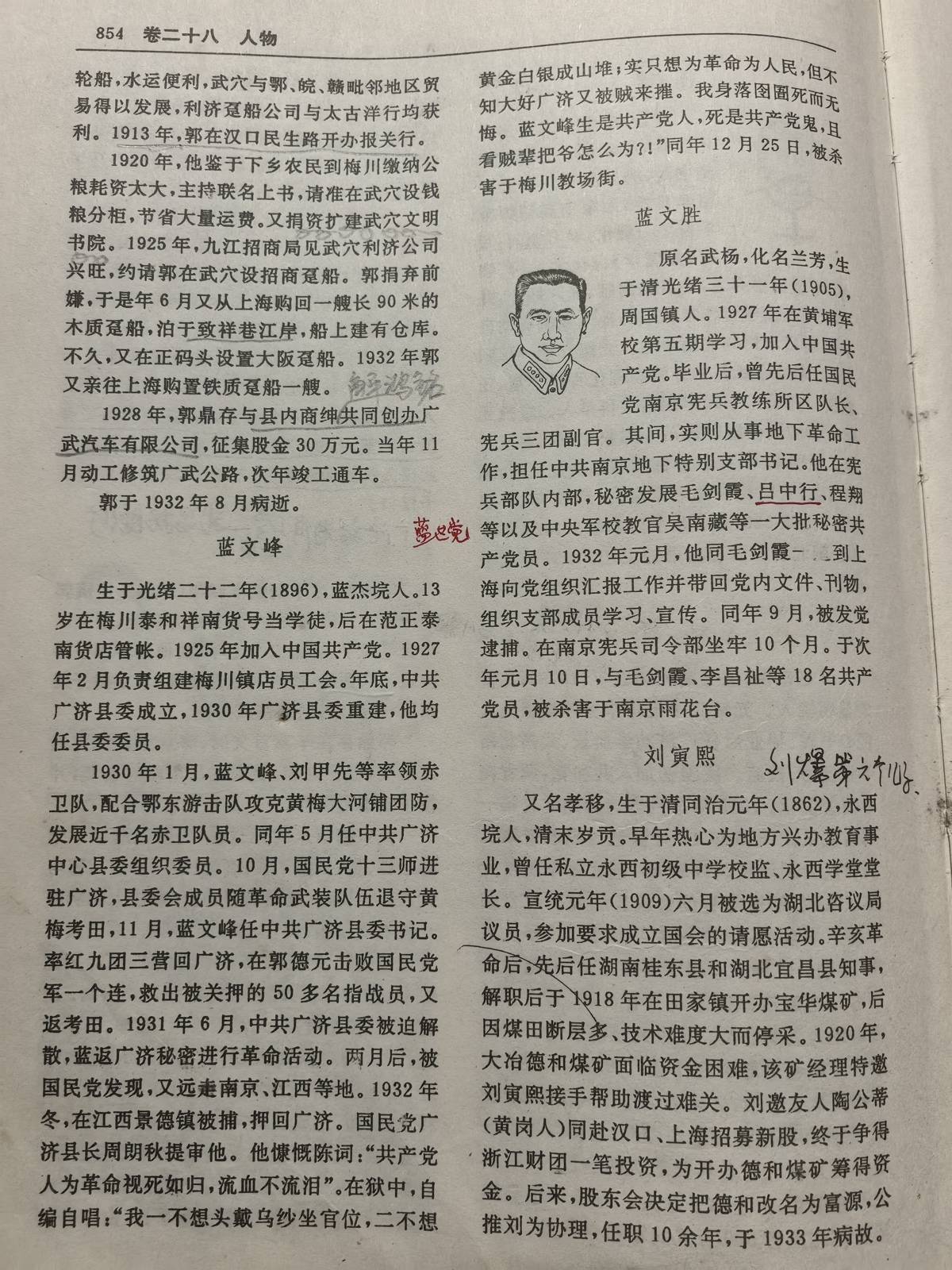《广济县志》有关蓝文峰的记载。(受访者供图)