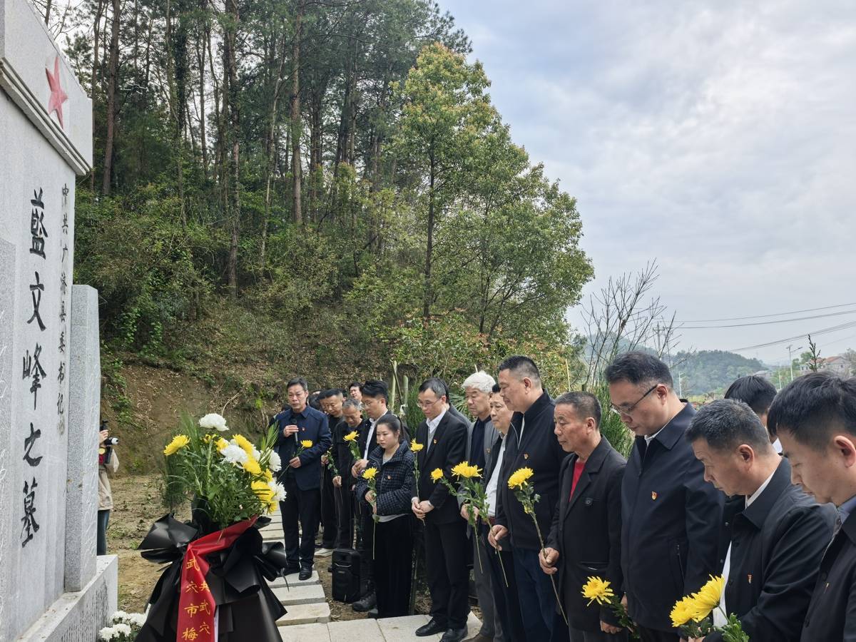 与往年不同,今年蓝文峰烈士的墓前不再孤单,除了守墓人张胜波夫妇,武穴市史志研究中心、红色文化研究会和梅川镇的近百名党员干部也前来祭扫。