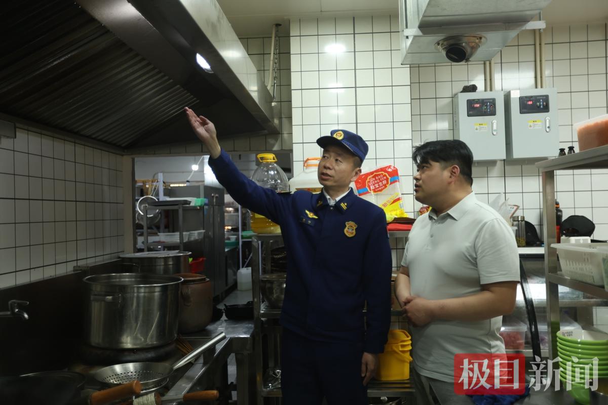 消防监督员重点对餐饮场所的厨房操作间、燃气管道、疏散通道等关键区域进行细致排查。