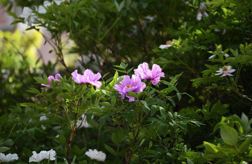 ▲▼4月3日,保康县清溪河景观公园盛开的牡丹花。