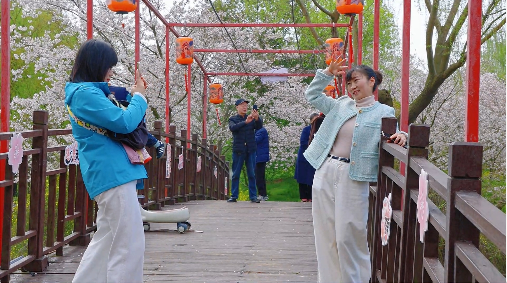 “当前正值中樱盛花期,中樱的种植面积在园区内最大,景区还拥有国内独具特色的樱花大道,十分适合拍照,能实现人与花相融的美好效果。”雷都樱花部落运营总监张晓燕介绍,今年樱花季,景区夜间不仅能观赏夜樱,还有打铁花、火壶等特色表演,白天也安排了汉服巡游活动,丰富游客的游玩内容。