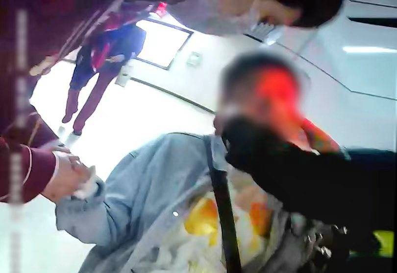 “你之前有没有过早,之前有类似情况吗?”叶海亮接到报告后快速赶到现场,仔细询问乘客不适症状。得知乘客吃过早餐,在路途中出现胸闷、呼吸困难、手脚发麻等症状,叶海亮结合经验初步判断其出现的是呼吸性碱中毒。