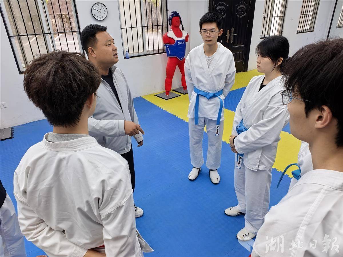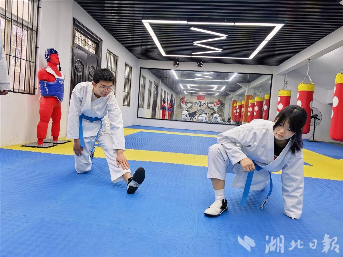 在湖北建院,张艺蓓学的是建筑设计,汤佳鑫读的是工程造价。专业课程不轻松,训练更不能落下。每天下午课后,他们换上道服奔向训练馆,周末、寒暑假几乎“泡”在道场里。