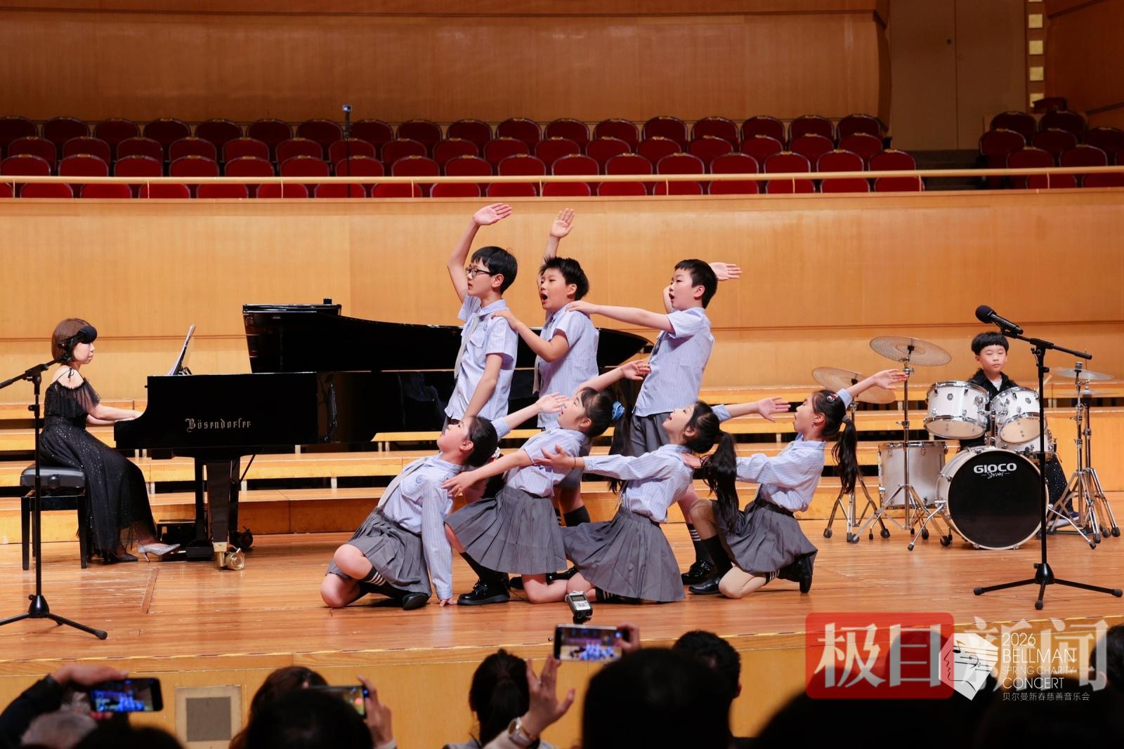 紧接着,5岁孩童的钢琴独奏清脆灵动,青少年的小提琴独奏激情洋溢,师生联弹合奏默契无间。