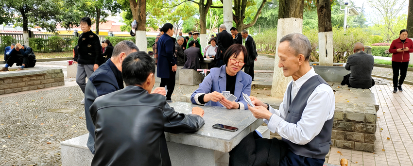 湖北日报客户端讯(通讯员向国大)春日的巴东巫峡广场,高大的树木枝繁叶茂,投下大片清凉的绿荫,成为市民的休闲阵地。大人或棋牌对弈、或载歌载舞、或悠然漫步,孩童嬉戏,一派闲适景象。