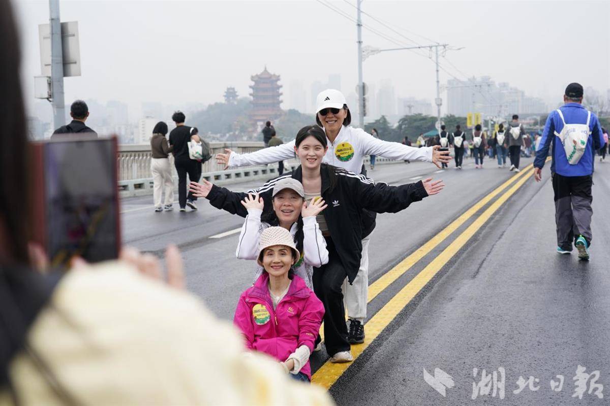 同样“让路于游客”的还有武汉长江大桥。3月22日,2026武汉马拉松选手跑过之后,这座69岁的“万里长江第一桥”迎来了罕见的“限时步行桥”时刻。约3000名市民游客信步桥面,抵达长江大桥纪念碑。“大桥六十多年了,从来都是车来车往。今天能安安静静地走一走,看樱花映着江水,听火车从脚下过,这种体验一辈子难得。”黄石大众假期旅行社领队黄劲松感慨。