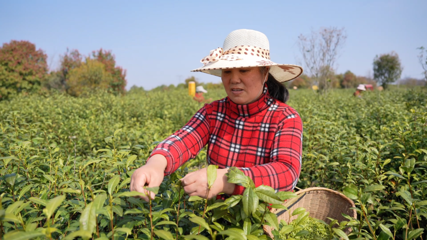 湖北日报客户端讯(通讯员 易荣波、石小清、刘呈浩、李怡、刘钦、邓亚飞)春回大地,茶园吐翠,大悟30万亩茶园进入盛采期。在三里城镇茶叶公园,茶农们指尖翻飞间,采下春日第一缕鲜爽。游客们手提茶篓跟着茶农学采茶,指尖撷取春芽的同时,感受着劳动的乐趣……春日的大悟,一幅茶文旅深度融合的乡村振兴画卷正徐徐铺展。