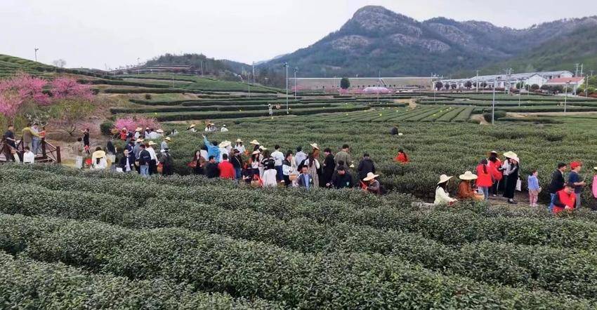 阳春三月,三里城镇茶叶公园等地吸引大量摄影爱好者与游客前来赏花、采茶。