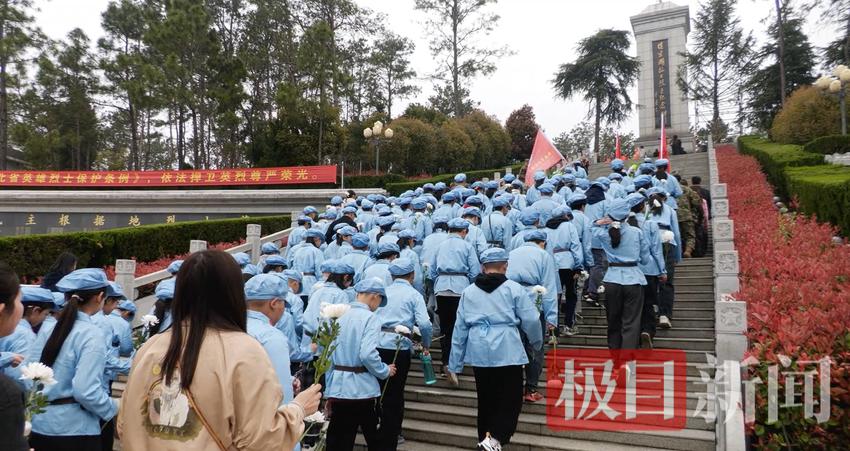 活动现场庄严肃穆。雄壮的国歌声在陵园上空回荡,全体师生肃立注目、身姿挺拔,向为民族解放事业英勇献身的革命先烈致以最崇高的敬意。随后,全场静默肃哀,以无声的思念追思先烈不朽功勋,深切感悟先辈们舍生取义、无私奉献、为国为民的革命情怀。默哀结束后,全体同学高举右拳、庄严宣誓,铿锵誓言响彻陵园,彰显出新时代青少年铭记历史、缅怀先烈、立志报国、勇担使命的坚定信念。师生代表缓步走向革命烈士纪念碑,郑重敬献花篮、整理缎带,以最虔诚的姿态告慰英魂、缅怀先烈,让英烈精神在代代传承中永放光芒。