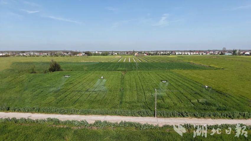 湖北日报客户端讯(通讯员 张杰、杨亚兵、卢晓娟)田间地头,绿意正浓。连日来,在松滋市南海镇文家铺村的麦田里,一架架植保无人机依次升空,组成作业编队,沿着预设航线精准飞防。药液经雾化后均匀洒下,高效完成小麦“一喷三防”作业。