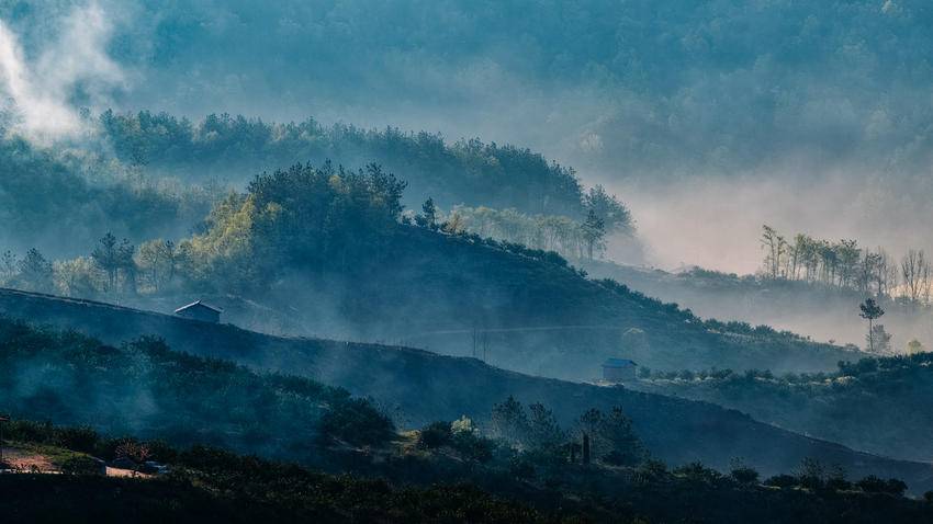 春日清晨的峡口社区,是被晨雾偏爱的秘境。动荡的雾霭如烟如涛,在田野里奔腾而过,给黛色山峦、错落屋舍蒙上一层半透明的轻纱。