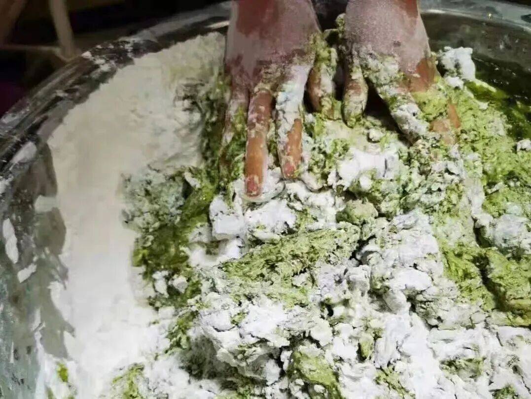 揉成光洁柔软的浅绿色面团