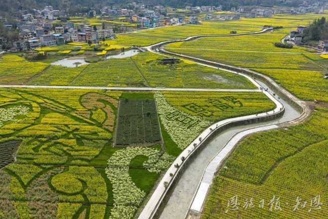 “以前这块地,机器耕不进去,人种得累,一亩流转费两百元都没人要。”麻阳寨村党支部书记黄良春蹲在田埂上,随手拔起一株油菜苗,“你看这根系,多壮实!现在地整好了,每亩租金七百元,村民在基地务工,一年能多挣三四千元。”变化背后,是田块“化零为整”的变革。高罗镇将麻阳寨村1211亩零散地块纳入高标准农田建设,把过去的2291块“巴掌田”整合成五十块连片大田,实现了“田成块、渠相连、路相通”。土地整好了,思路也跟着变了——当地聘请专业团队,以金黄油菜为主色,套种彩色油菜和绿色作物,让农业基地变身为旅游景区。麻阳寨不只为“看”,更算好了“四季账”。依托“企业+合作社+基地+农户”模式,村里实行稻油轮作:春天油菜花开引游客,油菜籽榨油增收益;夏秋两季种水稻,产出优质稻米。一块地,两季收成,三份收入——土地流转金、务工薪金、旅游收益,让“宣南粮仓”实至名归。