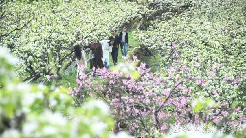 春光明媚的宣恩县,风里都是花的味道。车子刚拐进高罗镇麻阳寨村,车窗就被一片金黄“糊”住了。油菜花的甜香混着泥土的腥气扑了进来。几个村民正抬着“苗族服饰T台秀”的木板往花海里走,一位年轻姑娘对着手机镜头转圈,银饰哗啦啦响,直播间里有人留言:“这是哪?美哭了!”同样的春光,在不同的村庄开出不一样的花。椒园镇黄坪村的梨花开得安静,老果农陈桂华在游客的围观中,专注地给梨花人工授粉。万寨乡向家村村的油菜花田里,游客举着自拍杆跑来跑去,村支书覃浩把花海当背景,把“山货”卖向全国。“十五五”规划纲要提出,发展县域富民产业。三朵花,在这里有三种开法。跟着花香走,在田间地头听村民们算账——算的不是来了多少游客,而是一朵花如何从“风景”变成“丰景”,如何让农田不闲、农民不闲、日子更甜。