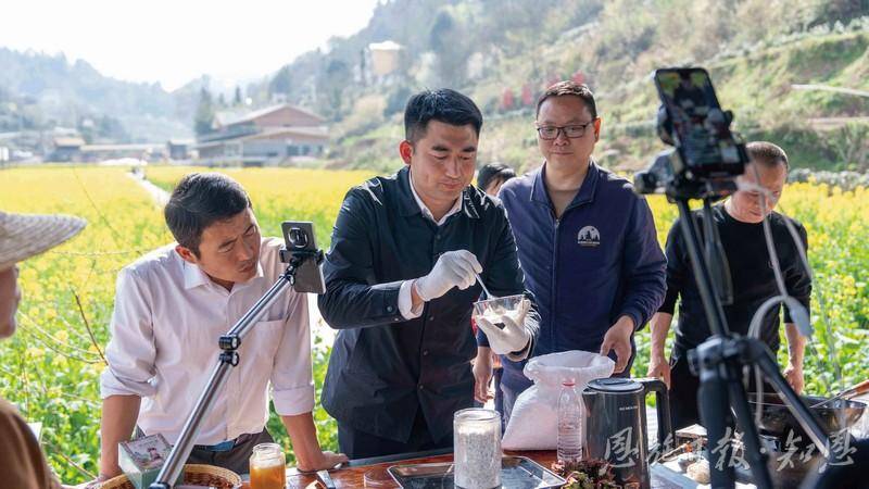 向家村村:“联”字当头,一花三吃算细账从黄坪村向东北行进,万寨乡向家村村的千亩油菜花也开得热闹。田间步道上,游客或漫步拍照,或蹲下身子闻花香,孩子们在花间追逐嬉戏。与麻阳寨不同,这里的油菜花已经给村里带来了一笔收益。“这片花田,我们算的是‘联’字账。”向家村村党支部书记覃浩站在观景台上,指着脚下的花海说。他说的“联”,是万寨乡探索的联村发展模式——向家片区四个村打破行政壁垒,成立联村党委,组建联村集体经营公司,把分散的土地、资金、人力整合起来,统一规划、统一经营、统一销售。“以前各搞各的,你有花我没花,游客来了看一眼就走。现在四个村抱团,你种油菜我种草莓,你做民宿我做餐饮,客源共享、业态互补,游客能玩一整天。”覃浩说,今年油菜花开以来,片区内民宿天天爆满,农家乐翻台不断,土特产供不应求。向家村村的油菜花,还有一本“吃”的账。“我们这片油菜,既能看,还能吃。”覃浩带记者走进花田,指着盛开的油菜花说,“油菜抽薹期,我们卖了一段时间菜薹,一亩能增收几百块;花期引游客,带动农家乐和民宿;花期过后收菜籽榨油,又是一笔收入。这叫‘一花三吃’。”下午,覃浩在花田旁的空地上对着手机镜头推销村里的土特产:“家人们看,这是我们向家村的自产菜籽油,纯天然、无添加,今天下单,明天发货!”直播间里,订单提示音不时响起。这样的场景,在向家村村已成常态——电商直播让“花海流量”变成了“产品销量”。