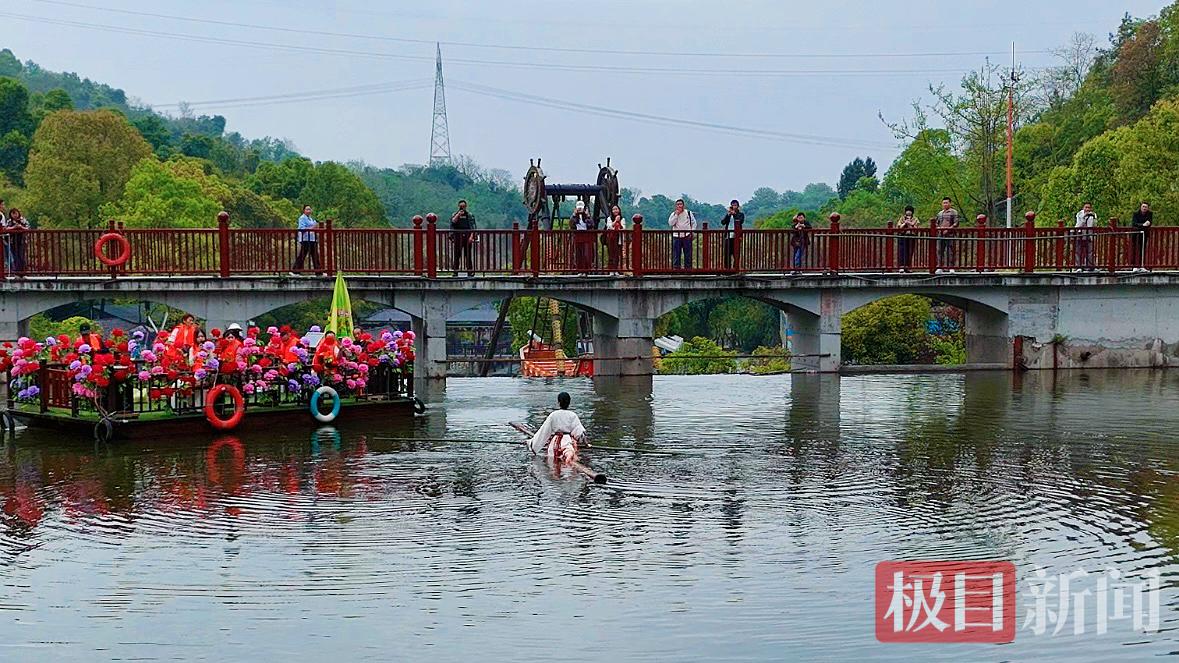 仅凭一根普通的楠竹,就能像凌波仙子般在水面上翩翩起舞。阳春4月,湖北宜昌点军区鸣翠谷的金龟湖上,一名来自贵州的00后女孩,每天表演非遗绝活“独竹漂”,吸引了许多游客驻足观赏。