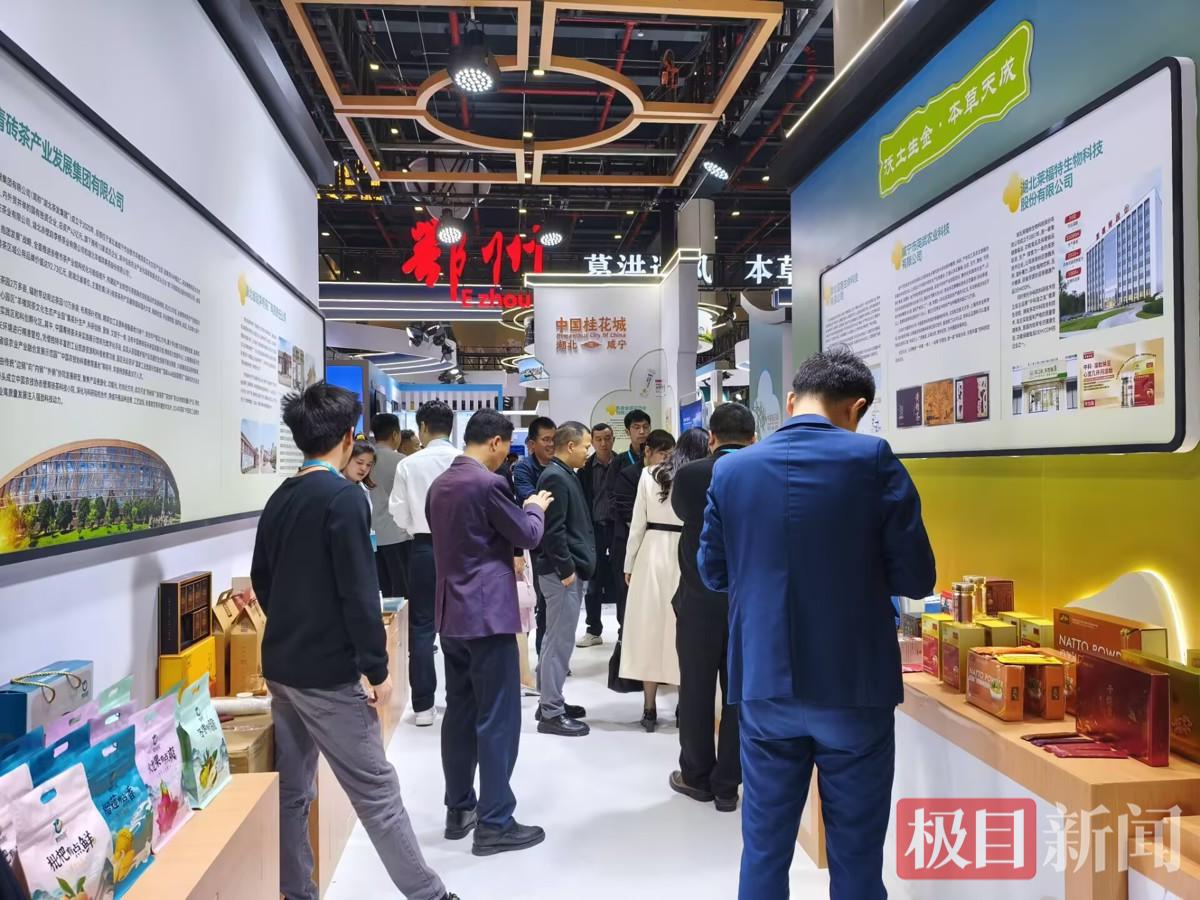 咸宁馆位于A1T03展区,金士达医疗、厚福医疗等咸宁市龙头企业悉数亮相,展品涵盖食品饮料、生物医药、科技商务服务等领域。展馆内人头攒动,客商们驻足咨询、洽谈合作,现场气氛热烈。咸宁企业带来的创新产品和健康解决方案,充分展示了咸宁在大健康产业链上的综合实力与发展潜力。
