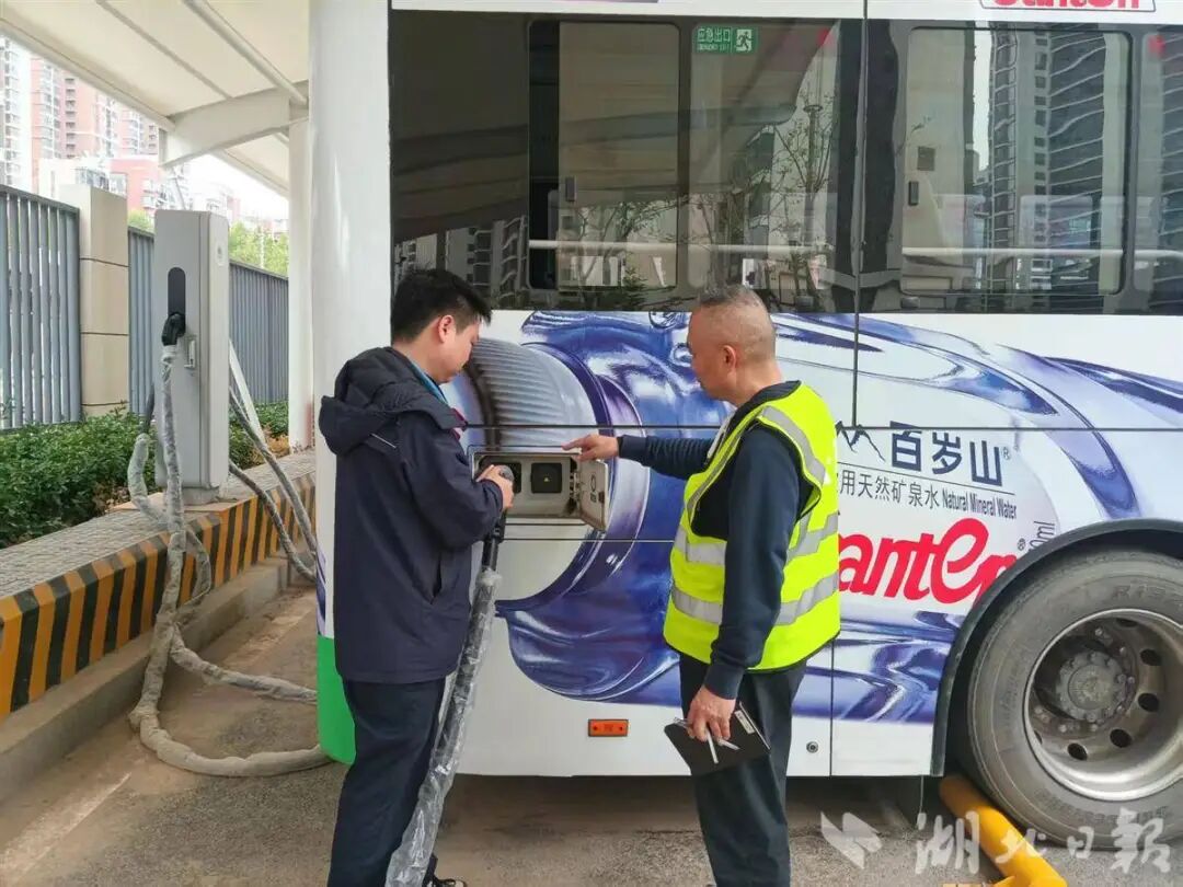 8日,为应对雷暴雨天气,公交安全员王平对508路年轻司机熊志立进行雷暴雨天充电安全的现场培训与指导。