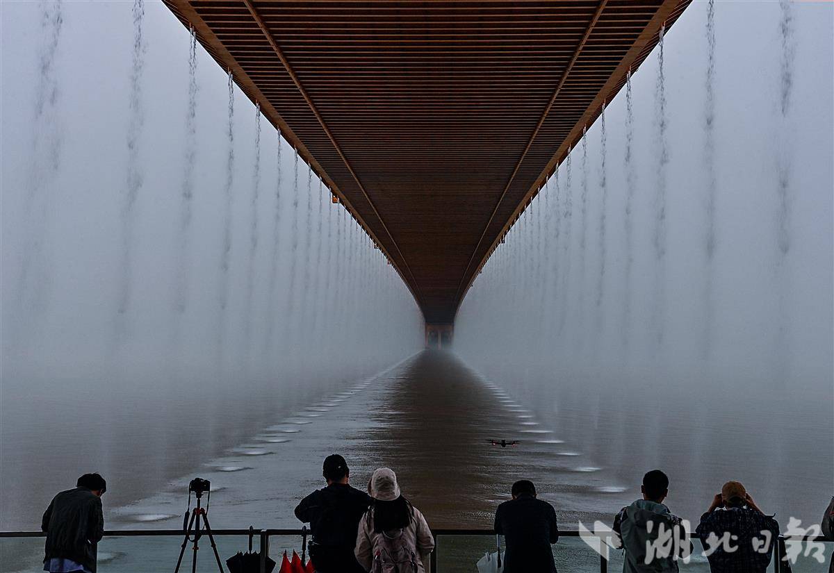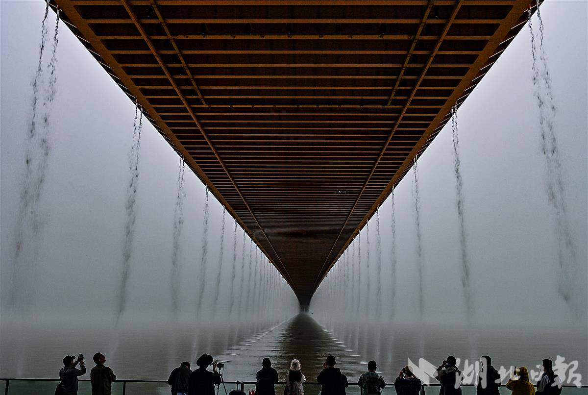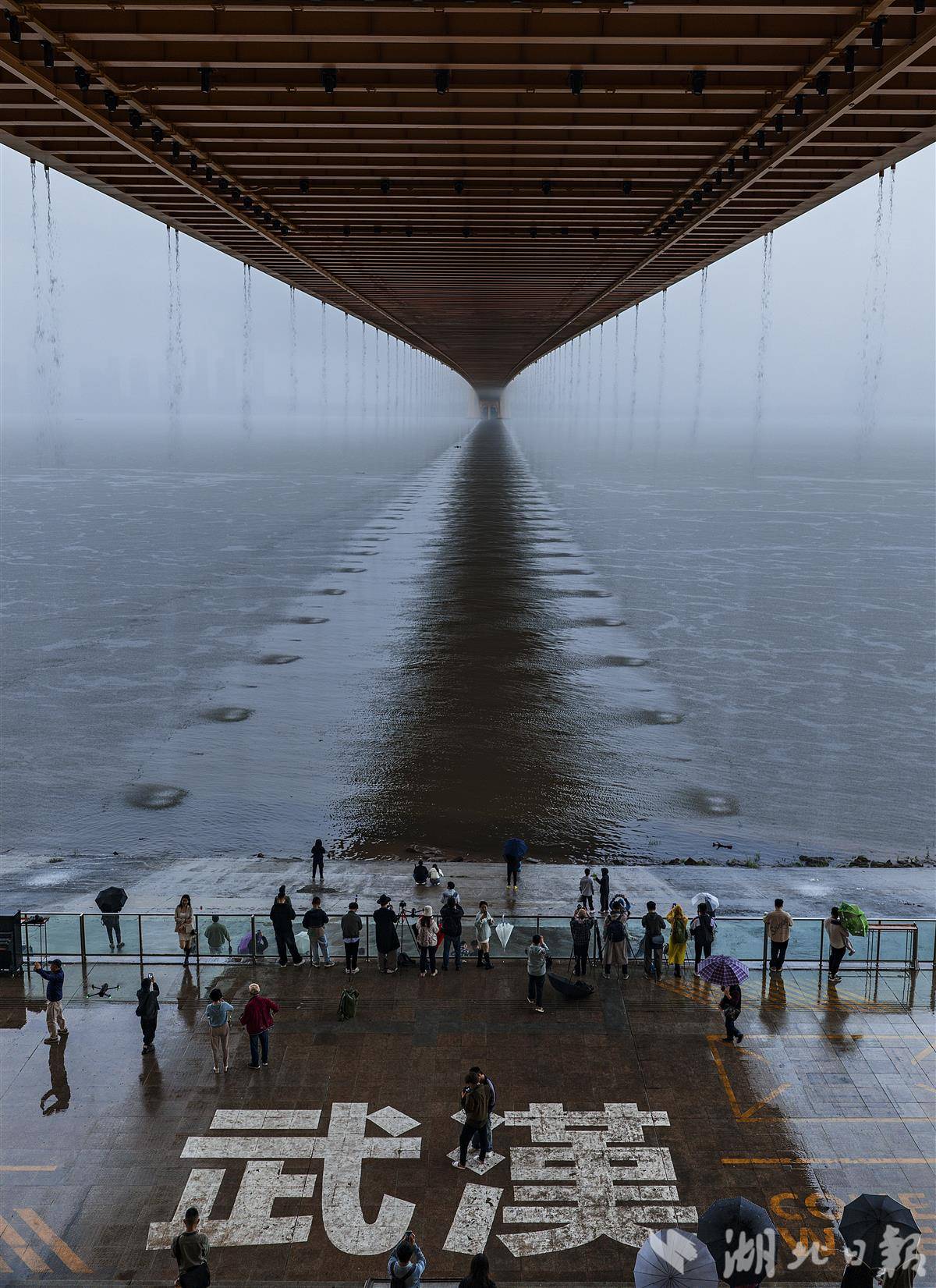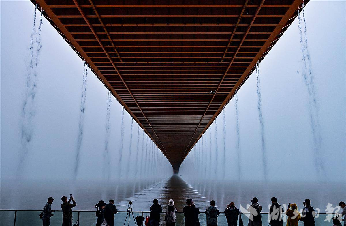 据了解,从4月8日凌晨到目前湖北多地连发52条暴雨、强对流天气预警:因每逢暴雨杨泗港长江大桥便出现“雨帘”景观,吸引了一批又一批追“雨帘”的市民游客,当日,曾经出现过两次“雨帘”景观。(湖北日报全媒记者 朱熙勇 摄)