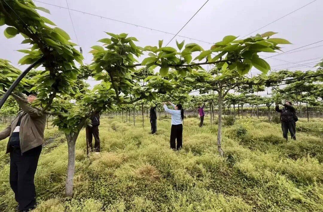 棚架梨是双垱村的主导特色产业。3月正值梨树盛花期,持续阴雨天气给花期管护带来不利影响。为最大限度降低天气危害,双垱村迅速组织10余名村民开展梨园管护工作:一方面及时疏通沟渠、开挖排水沟,避免梨树根系积水烂根;另一方面更换天网、加固棚架,增强梨园抗风雨能力,切实保障花期授粉与坐果率,为今年脆冠梨丰产丰收筑牢基础。