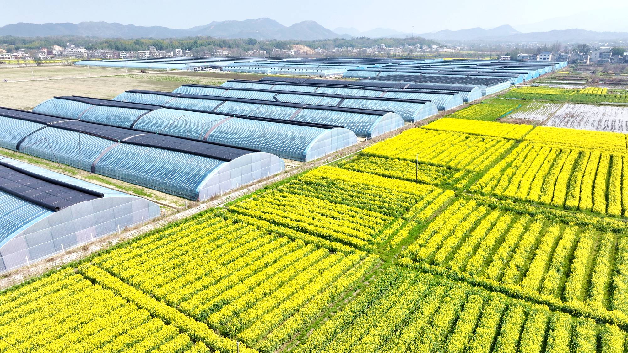 油菜花掩映下,一座座智能大棚拔地而起;春意盎然中,一幅乡村振兴的画卷正在关刀镇徐徐展开。