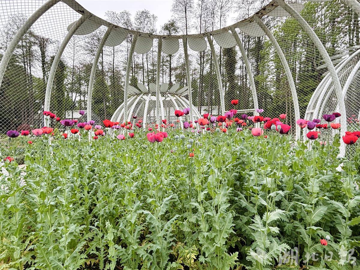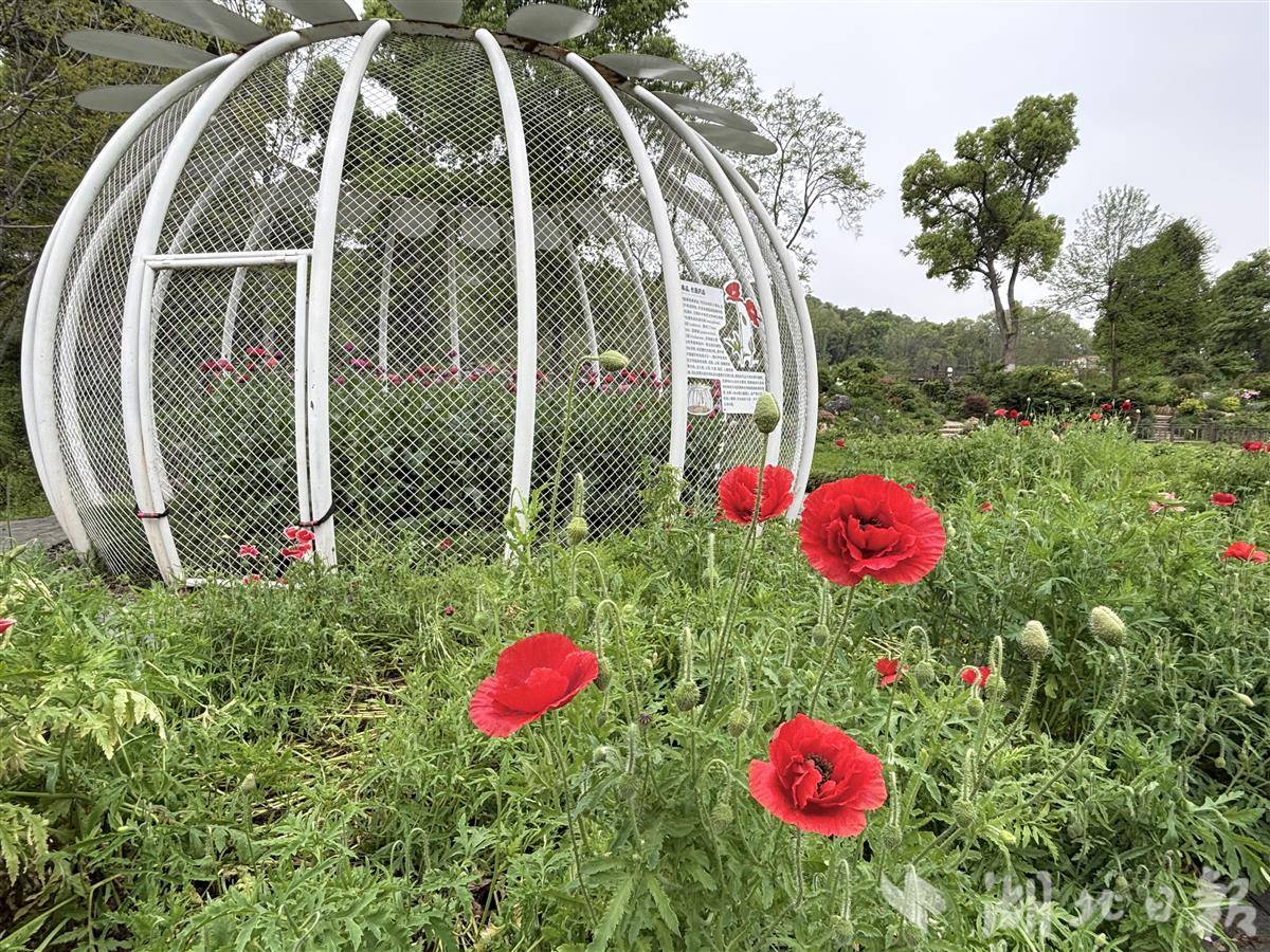 如今20多年过去,武汉植物园的罂粟科普展从未间断。从黑色铁笼到仿罂粟蒴果造型的五个白色铁笼,种植规模和展示形式升级,禁毒科普初心始终未变。