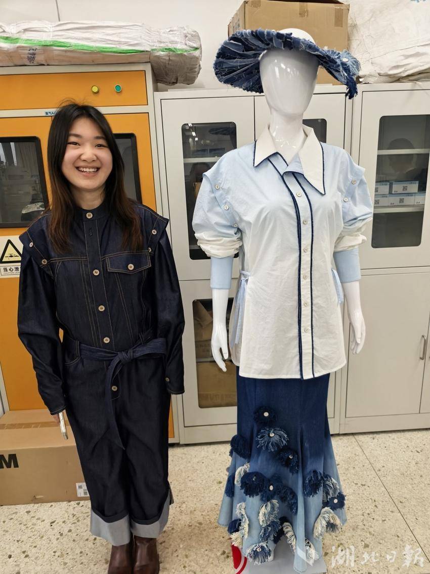 湖北日报讯(记者包东喜、通讯员姜永杰、郑婷)“我穿了70多分钟,感觉很舒服、很透气!”4月9日下午,武汉纺织大学研究生杨晨向记者展示自己设计的新衣,试穿在她身上的深色牛仔衣是由该校王金凤教授团队研发的循环混纺布料缝制而成,全球首款。