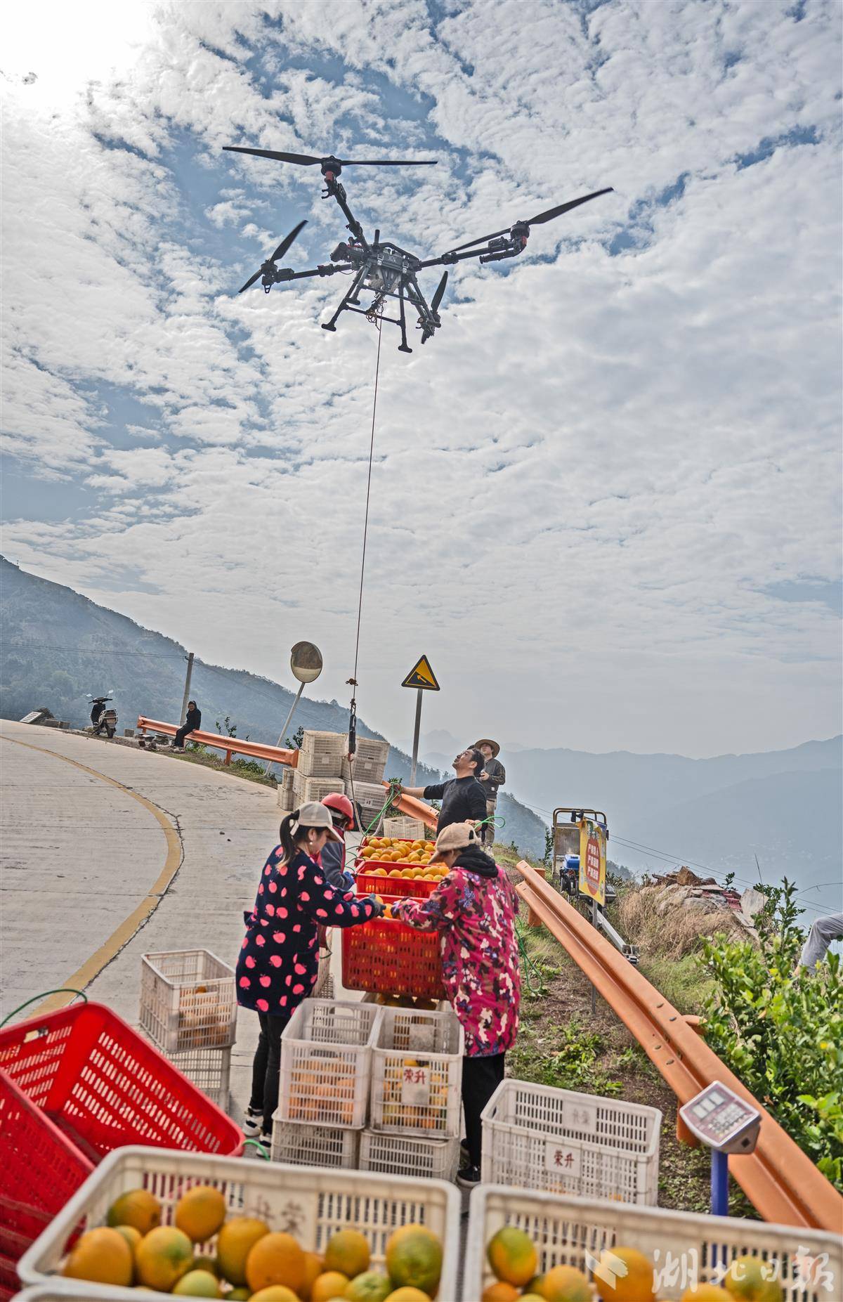 2025年11月,记者重访秭归,在水田坝镇青蒿峪村看到全新图景:村民熟练操控大型无人机,满载脐橙的飞行器掠过峡谷山巅,几分钟便将鲜果精准送达山下集散点。