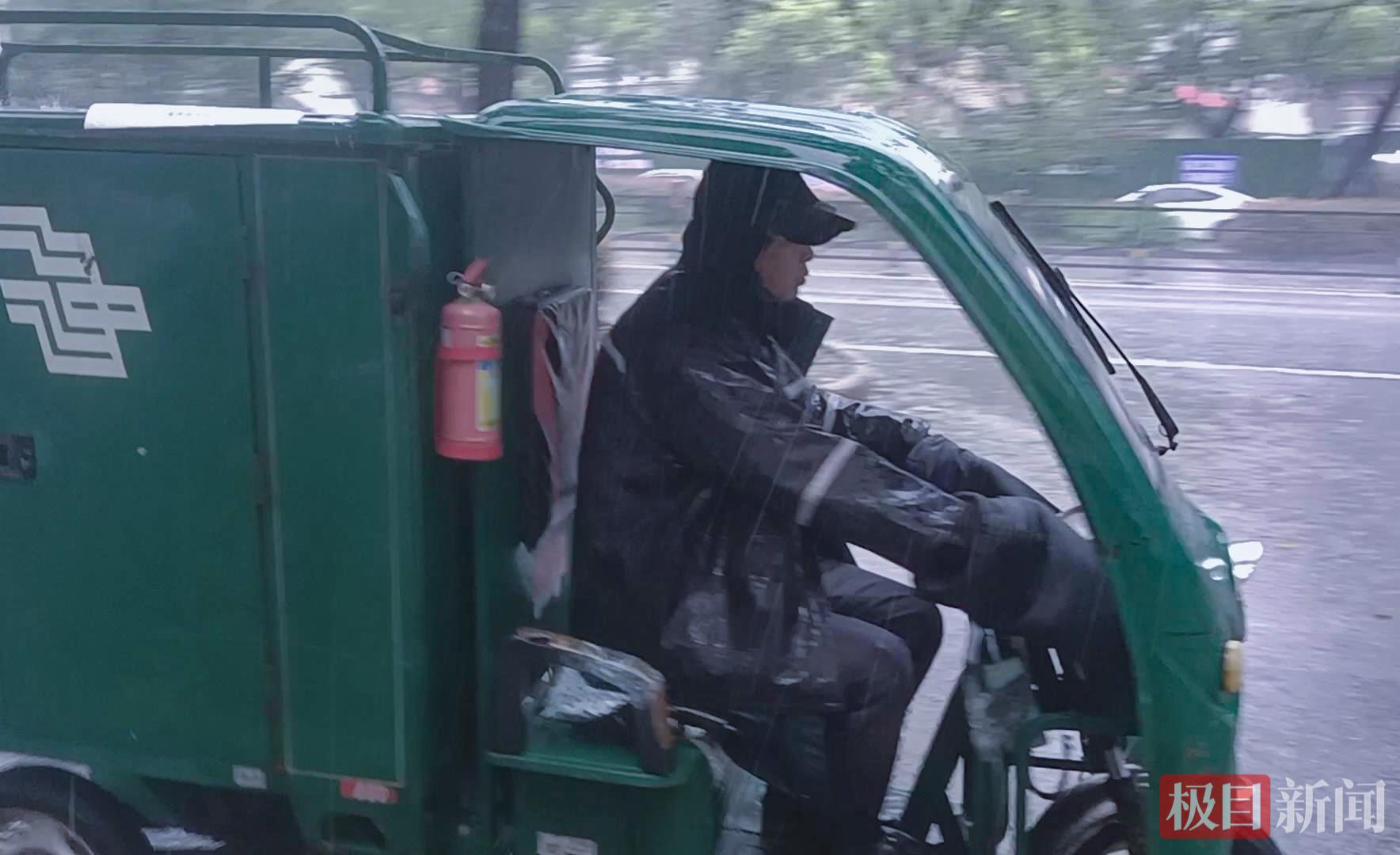 风雨中的投递员。