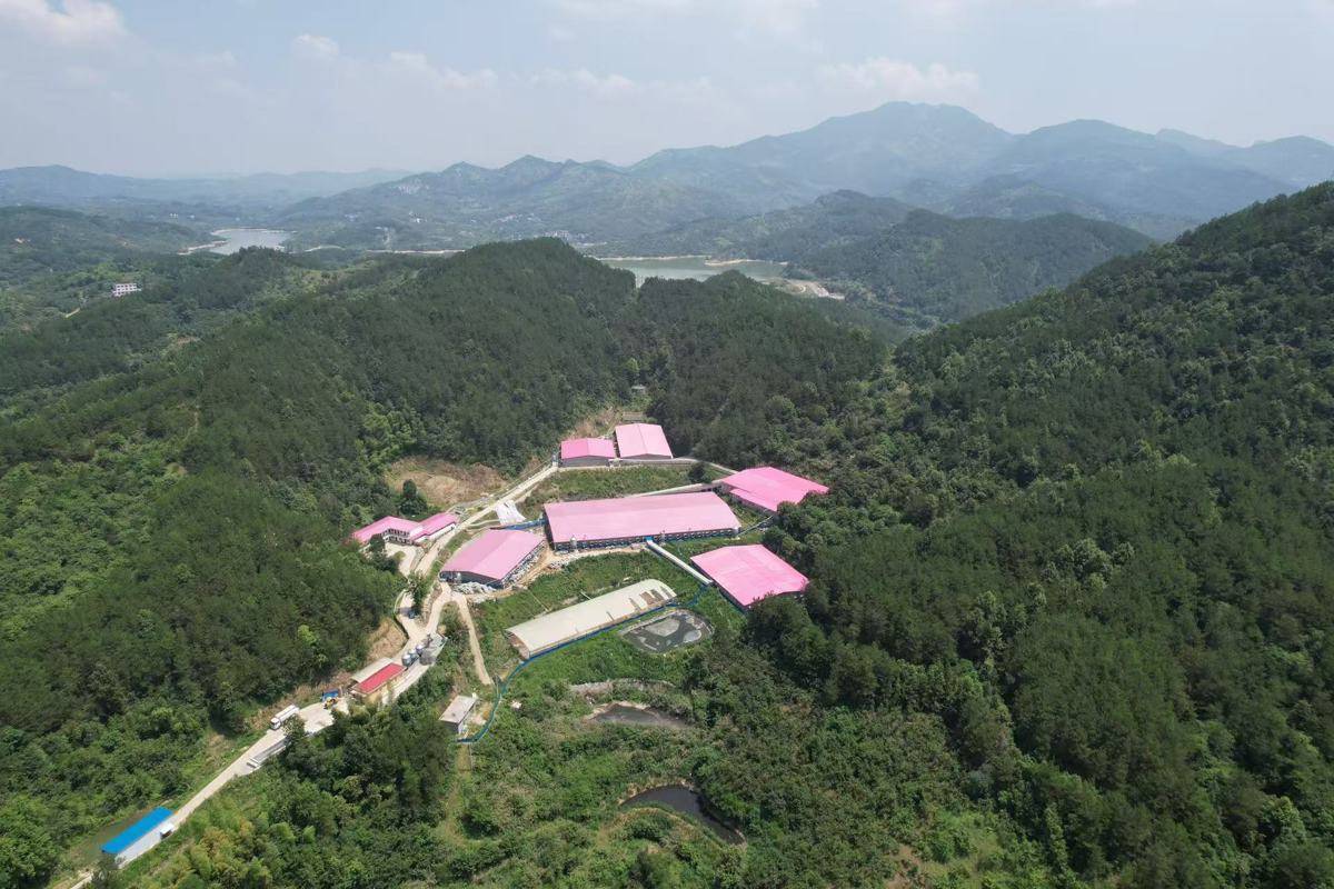 鸟瞰天帮山农牧2500头育种场。