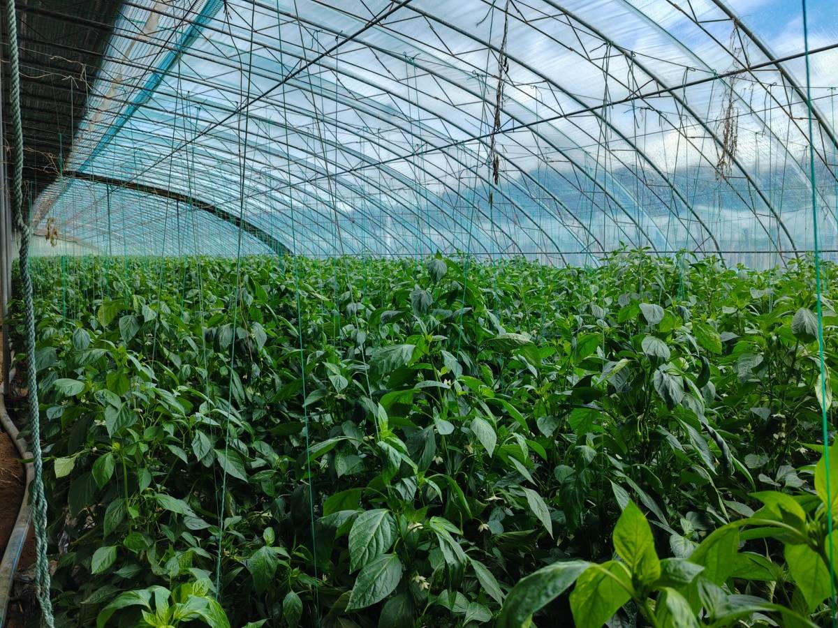 湖北天帮山生态农牧业发展有限公司(以下简称“天帮山农牧”)200多亩果蔬大棚内,辣椒、小番茄、猕猴桃等作物沐光生长。